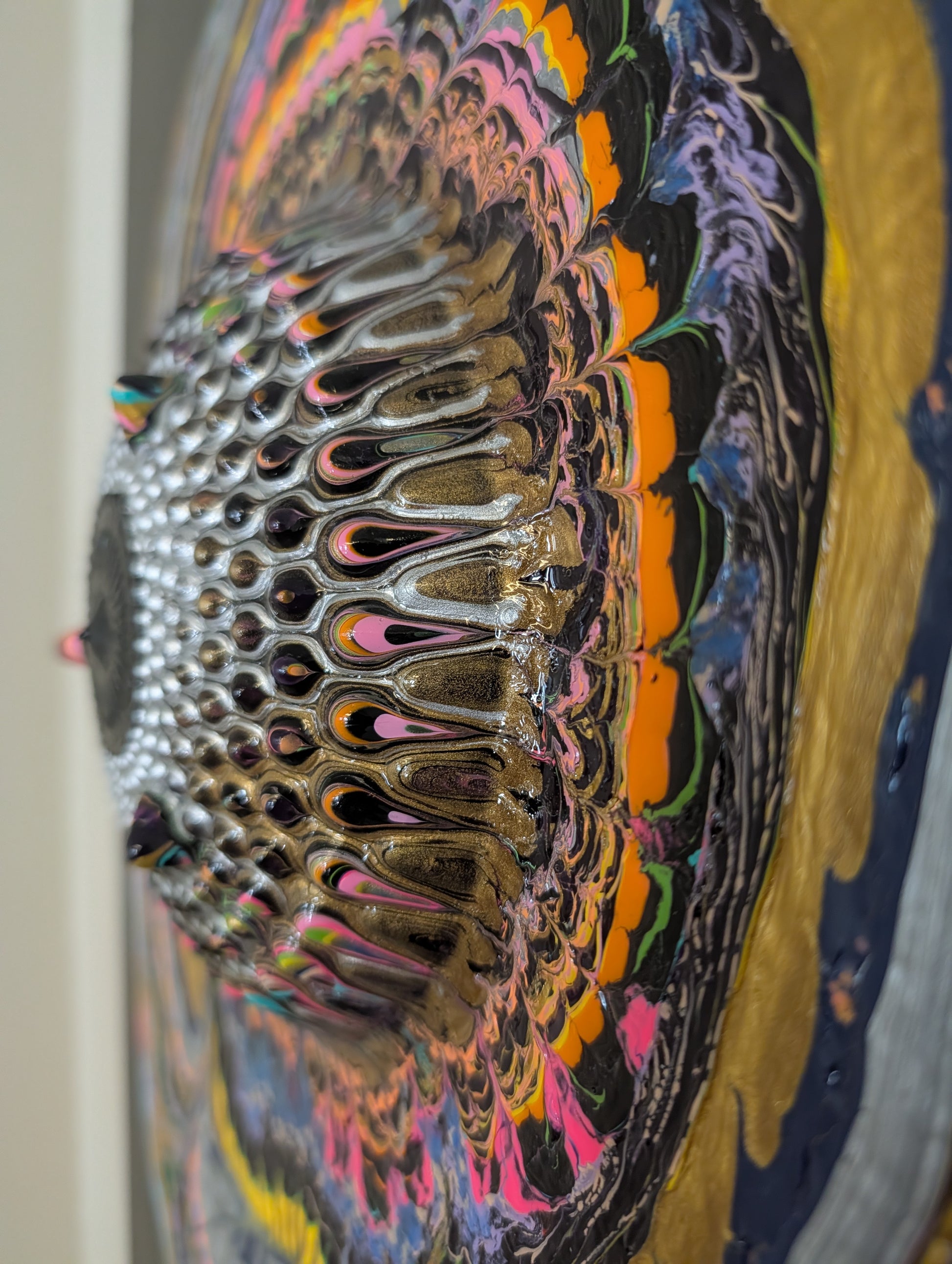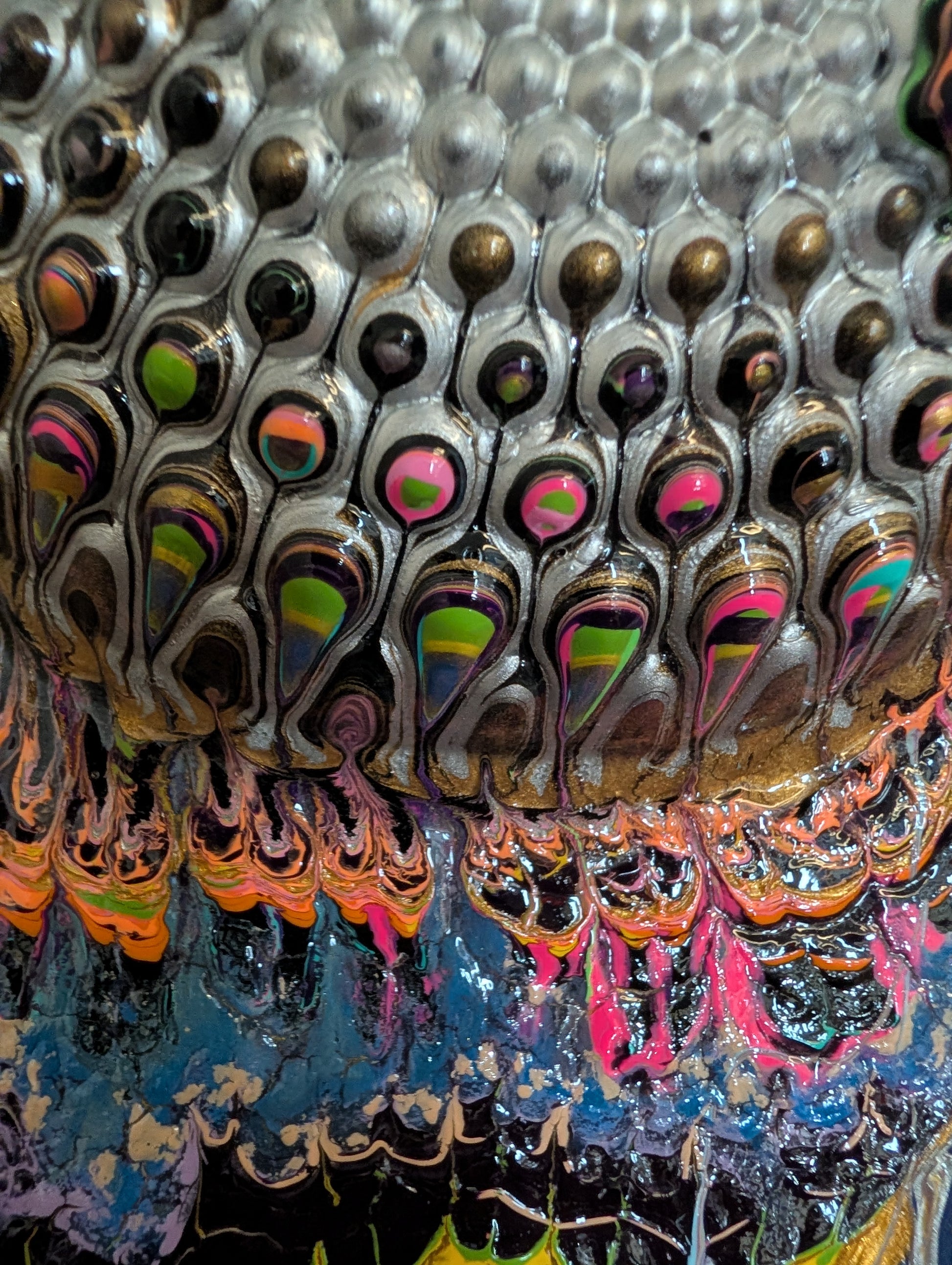 Getting a painting framed is welcome, but be sure to buy museum glass/fiberglass, which allows the porus acrylic to breathe and prevents molding.