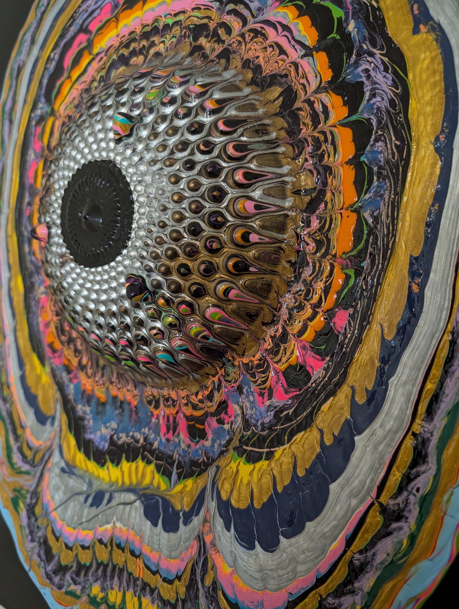 Do not stack edges of paintings onto other paintings, this puts a divot into the muslin, however, if such an instance occurs, a damp paper towel that is rubbed onto the BACK of the canvas where the divot is will re-stretch and tighten the muslin and erase the divot (mostly). If you have questions about this part of the repair process, please also contact Nico.